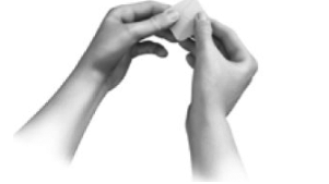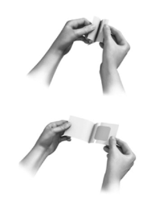 - Bend the patch in half so that the S-shaped break in the liner opens.