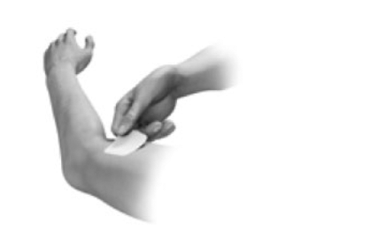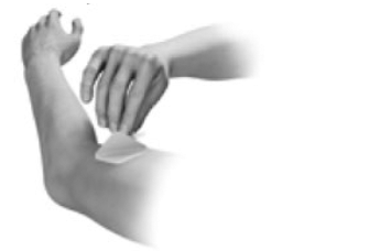 - Press the patch down firmly with the palm of your hand for about 20 - 30 seconds to make sure the patch is touching the skin and that the edges stick well.