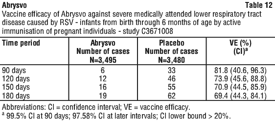 For more information, see Section 5. What should I know after being given ABRYSVO? in the full CMI.