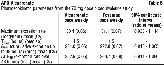 Preclinical studies show that any drug that is not deposited in bone is rapidly excreted in the urine. No evidence of saturation of bone uptake was found over three weeks in rats with a cumulative intravenous dose of 35 mg/kg. Although no clinical information is available, it is likely that, as in animals, elimination of alendronate via the kidney will be reduced in patients with impaired renal function. Therefore, somewhat greater accumulation of alendronate in bone might be expected in patients with impaired renal function (see Section 4.2 Dose and Method of Administration).