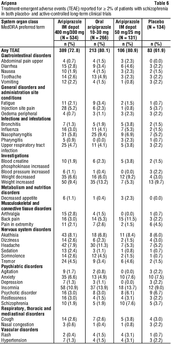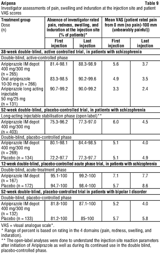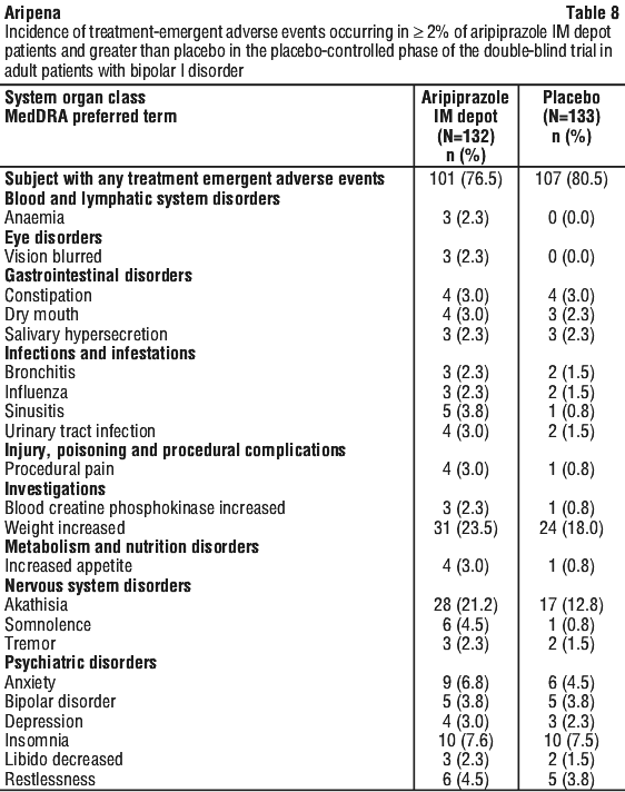 The effectiveness and safety of Aripena in the treatment of schizophrenia in patients ≥ 61 years and in the treatment of bipolar I disorder in patients ≥ 66 years have not been evaluated.
