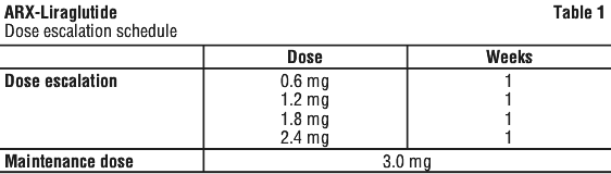 Treatment with ARX-Liraglutide should be discontinued after 12 weeks on the 3.0 mg/day dose if a patient has not lost at least 5% of their initial body weight.