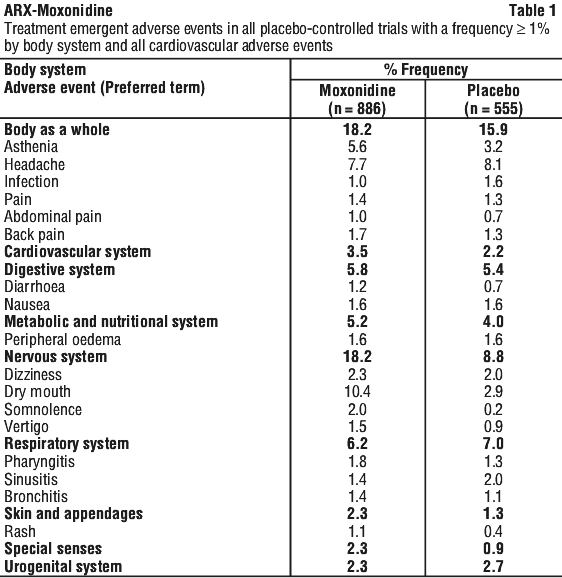 ARX-MOXONIDINE helps most people with high blood pressure, but it may have unwanted side effects in a few people.