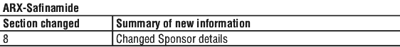 ARX-Safinamide should not be used during breast feeding. Available pharmacodynamic/toxicological data in animals have shown excretion of safinamide in milk. In rat pups indirectly exposed to safinamide during the lactation period, skin discoloration, presumed to be caused by hyperbilirubinemia resulting from hepatobiliary toxicity, was observed. It is not known if safinamide is excreted in human milk. The potential relevance to humans in unknown; however risk to the breast-fed child cannot be excluded.4.7 Effects on Ability to Drive and Use Machines