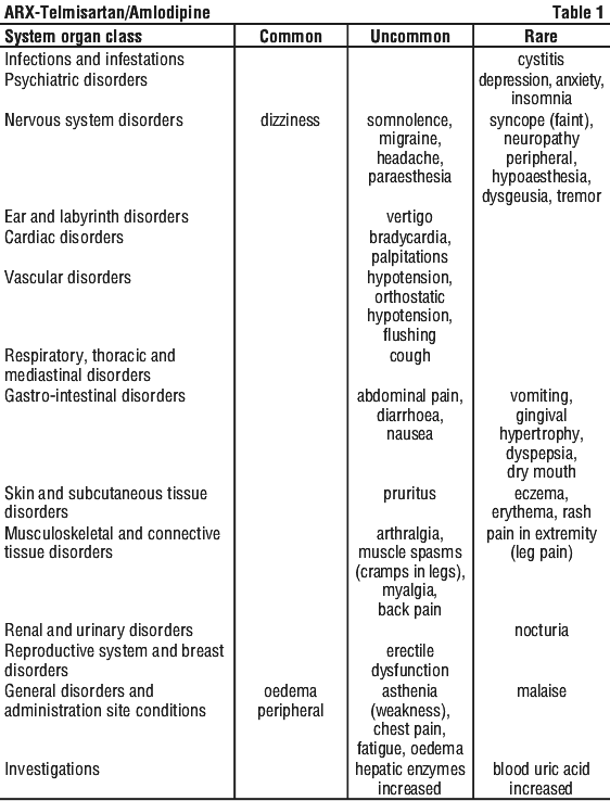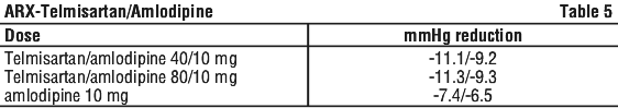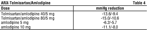 Patients treated with 10 mg amlodipine who experience any dose limiting adverse reactions such as oedema, may be switched to ARX-Telmisartan/Amlodipine 40/5 once daily, reducing the dose of amlodipine without reducing the overall expected antihypertensive response.