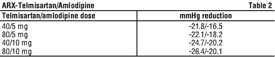 ARX-Telmisartan/Amlodipine containing telmisartan 80 mg/amlodipine 10 mg.