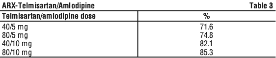 ARX-Telmisartan/Amlodipine may be administered in patients whose blood pressure is not adequately controlled with amlodipine or telmisartan alone.