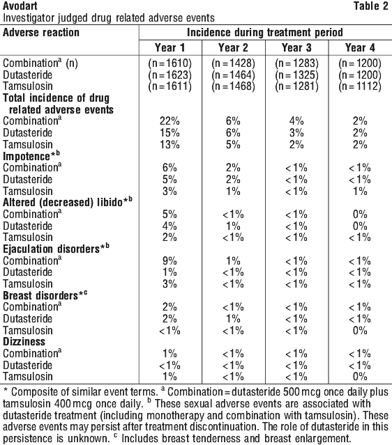 If you are taking AVODART and an alpha-blocker, talk to your doctor about this and other possible side effects.
