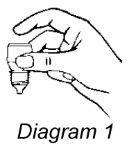 - Hold the bottle upside down in one hand between your thumb and middle finger (see Diagram 1).