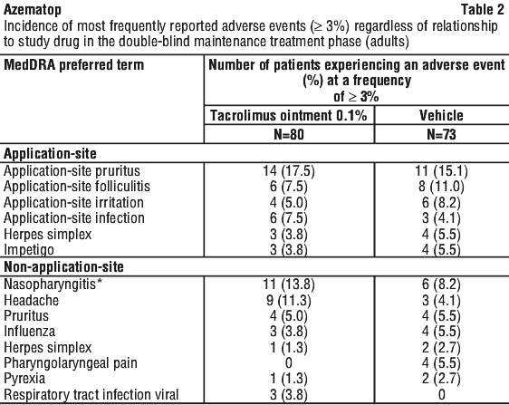 aZematop 0.1% contains the active ingredient tacrolimus. aZematop 0.1% is used for the treatment of moderate to severe atopic dermatitis in adults and adolescents 16 years of age and above who cannot use or did not respond to other simple treatments.