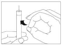 Hold the pen with needle pointing Upright. Push the dosage knob until the stop.