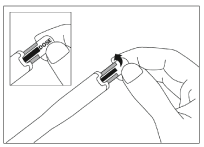 Attach the needle by pushing directly on to the pen, until you hear a ‘click’. Do not twist or screw the needle onto the pen. Do not click on at an angle.