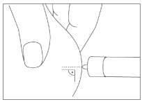 Fold the skin lightly and insert the injection needle completely at a 45° to 90° angle using a dart-like motion.