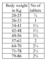 The dose prescribed will usually be 20 mg for every kg of your body weight taken three times in the one day every four hours.
