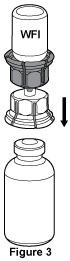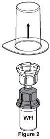 - While holding onto the vial of Water for Injections, carefully remove the outer package from the Mix2Vial™, being careful to leave the Mix2Vial™ firmly attached to the vial of Water for Injections, see Figure 2. Make sure that you only remove the outer package and not the Mix2Vial™.