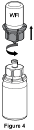 - Once the contents of the Biostate® vial are completely dissolved, firmly hold both the transparent and blue parts of the Mix2Vial™. Unscrew the Mix2Vial™ into two separate pieces, see Figure 4. Discard the empty Water for Injections vial with the blue part of the Mix2Vial™ still attached into an appropriate waste container.