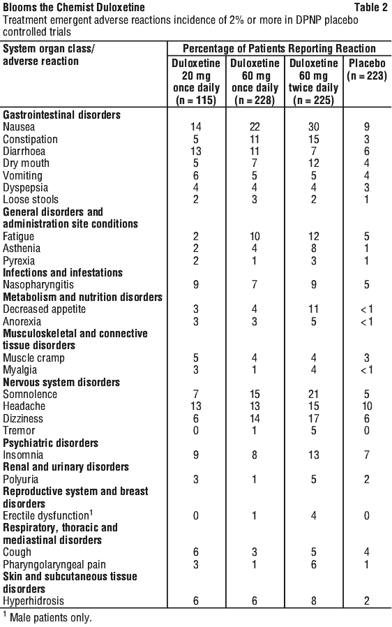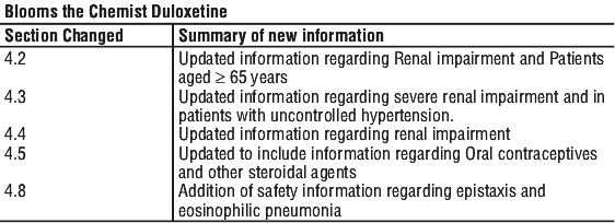 Blooms the Chemist Duloxetine 30 mg and 60 mg enteric capsule. PVC-Aclar/Alu or Alu/Alu foil blister packs of 28 enteric capsules.