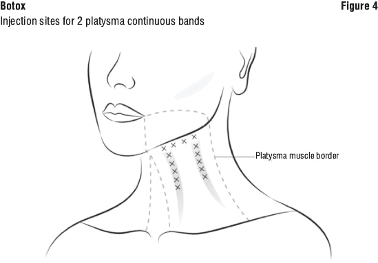 - to temporarily improve the appearance of continuous vertical bands connecting the jaw and neck (platysma muscle) seen at maximum contraction in healthy adults.