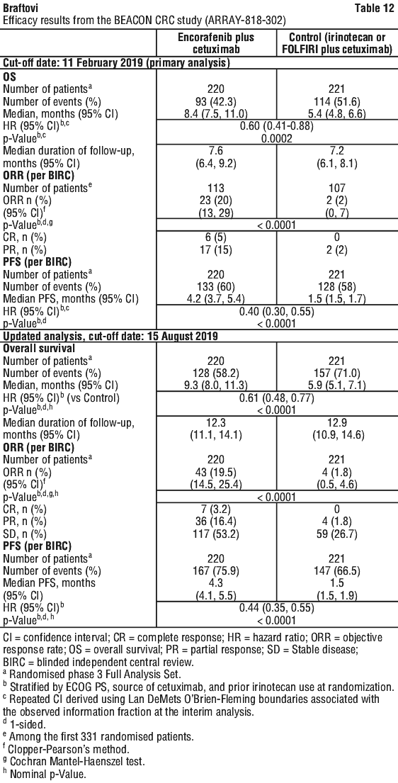 BRAFTOVI is an anti-cancer medicine containing the active ingredient encorafenib, which belongs to a group of medicines called ‘BRAF inhibitors’.