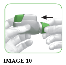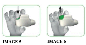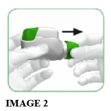 - When you are about to take your dose of medicine, remove the protective cap by LIGHTLY SQUEEZING THE ARROWS marked on each side and pulling outwards (see image 2).