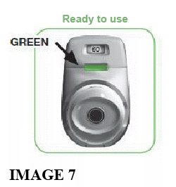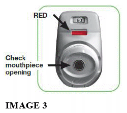 - If the control window still does not change to RED, you may have forgotten to release the green button before inhaling or may not have inhaled correctly. If that happens, try again.