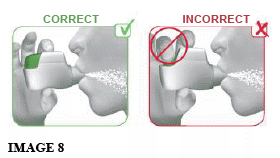 2.3 Breathe in STRONGLY and DEEPLY through your mouth (see image 8). This strong, deep breath pulls the medicine through the inhaler into your lungs.