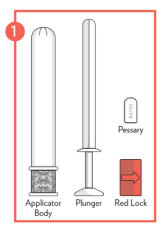 - Remove the pessary from the foil blister pack and place into the open end of the applicator body with the curved edge of the pessary facing down. Push the plunger and lock into the applicator body until you feel a click.