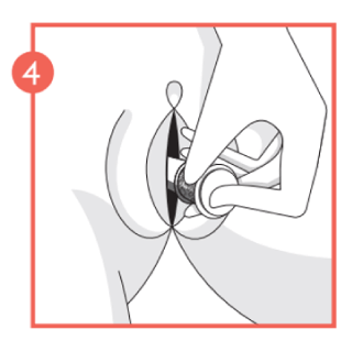 - Once you have felt the click, remove the lock from the plunger and then carefully insert the applicator as deep as is comfortable into the vagina up to the patterned grip zone. This is easiest when lying on your back with your knees bent up.