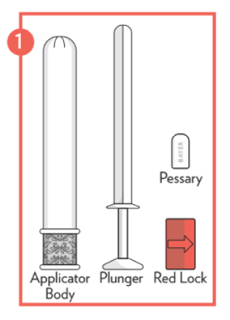 - Remove the pessary from the foil blister pack and place into the open end of the applicator body with the curved edge of the pessary facing down. Push the plunger and lock into the applicator body until you feel a click.