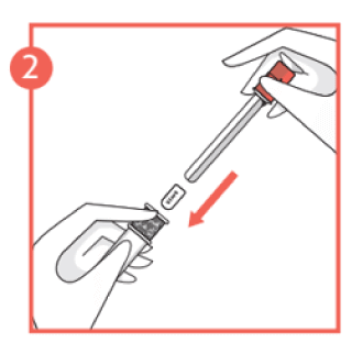 - Remove the applicator from the packaging and pull out the plunger and red lock from the body of the applicator.