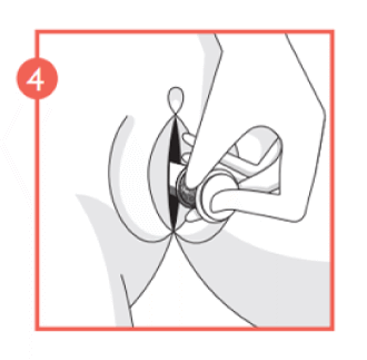 - Once you have felt the click, remove the lock from the plunger and then carefully insert the applicator as deep as is comfortable into the vagina up to the patterned grip zone. This is easiest when lying on your back with your knees bent up.