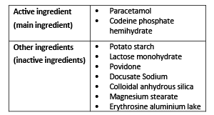 What Cipla Pain Relief Paracetamol and Codeine Phosphate Hemihydrate 8 tablets contains