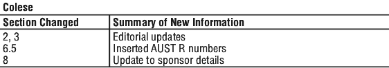 For more information, see Section 5. What should I know while taking COLESE? in the full CMI.