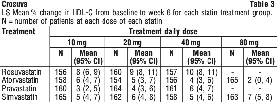 The mean percent change in HDL-C from baseline to Week 6 for each statin treatment group represented in Figure 2 is summarised with 95% CI in Table 3.