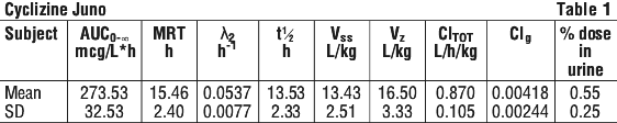 For more information, see Section 2. What should I know before I use CYCLIZINE JUNO? in the full CMI.