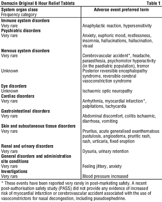Tell your pharmacist or doctor as soon as possible if you do not feel well while you are taking DEMAZIN 6 hour relief tablets.