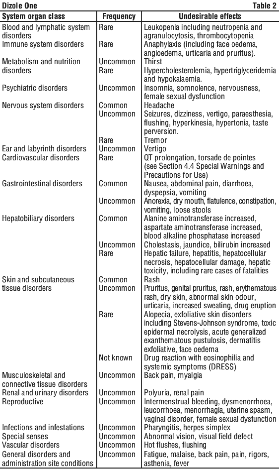 The information in this leaflet relates only to DIZOLE ONE. It is not to be used in relation to any other product, which may also contain the same active ingredient.
