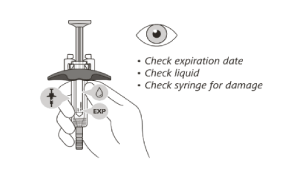 Open the sealed carton and carefully lift the syringe out of the carton by holding the barrel.
