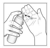 - Apply the medication by holding the can at least 3cm (approximately 1.5 inches) from the skin and spray onto the affected area.