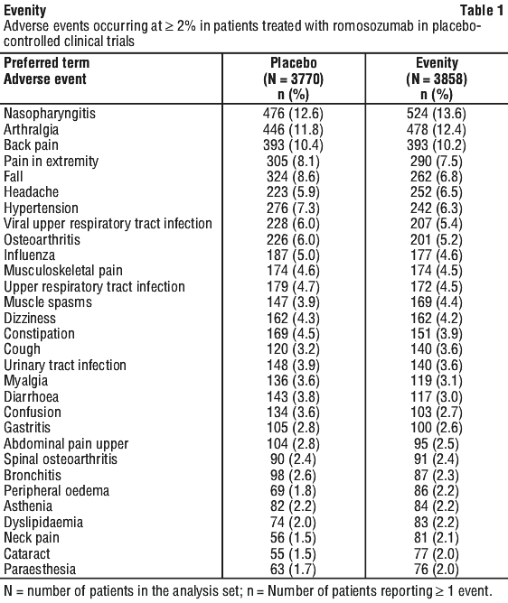 An increase in serious cardiovascular events (heart attack and stroke) has also been reported in patients treated with EVENITY.