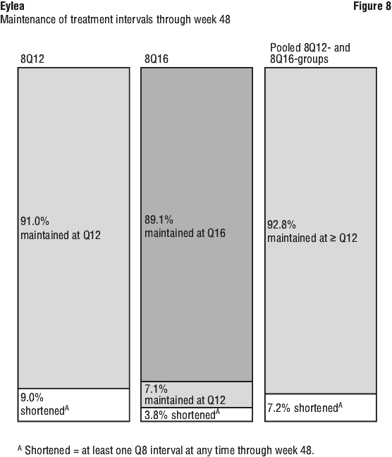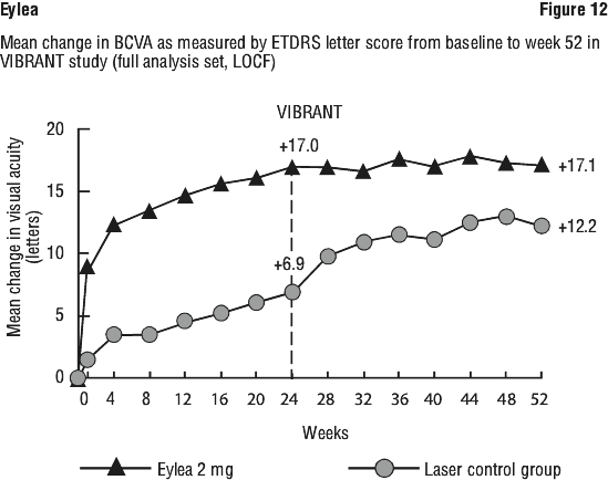 At week 52, 33.3% and 33.8% of 2Q4 patients, 27.7% and 29.1% of 2Q8 patients, and 7.5% and 14.3% of laser control patients in the VIVIDDME and VISTADME studies, respectively experienced an improvement in the severity of diabetic retinopathy, as measured by a ≥ 2 step improvement in the diabetic retinopathy severity scale (DRSS). This improvement was maintained through week 100 (see Table 11).