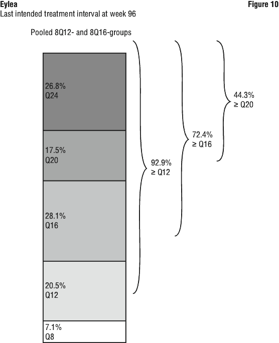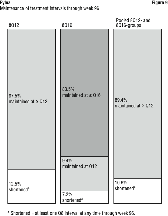 Patients in the 8Q12-, 8Q16- and 2Q8-groups who completed week 96 received a median (mean) of 9.0 (9.5), 8.0 (7.8) and 14.0 (13.8) injections, respectively.