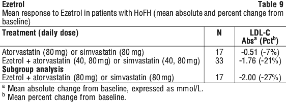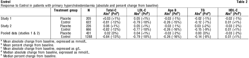 In a pooled analysis of all Ezetrol + statin doses, Ezetrol had a beneficial effect on total-C, Apo B, TG, and HDL-C (Table 4).