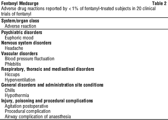 Additional ADRs that occurred in < 1% of fentanyl-treated subjects in the 20 clinical trials are listed in Table 2.