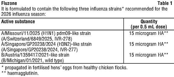 The type and amount of viral antigens contained in Fluzone conform to the annual requirements of the Australian Influenza Vaccine Committee (AIVC) and the World Health Organization (WHO) recommendations for the season.