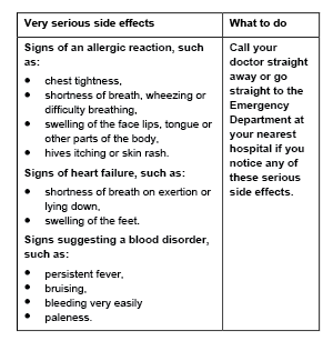 During treatment, you may be at risk of developing certain side effects. It is important you understand these risks and how to monitor for them. See additional information under Section 6. Are there any side effects?