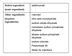 - 40 mg adalimumab in 0.4 mL solution in a prefilled syringe (AUST R 281470)