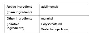 - 40 mg adalimumab in 0.4 mL solution in a prefilled pen (AUST R 281509)