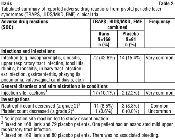 Tell your doctor or pharmacist as soon as possible if you do not feel well while you are taking Ilaris. All medicines can have side effects. Sometimes they are serious, most of the time they are not. You may need medical attention if you get some of the side effects.
