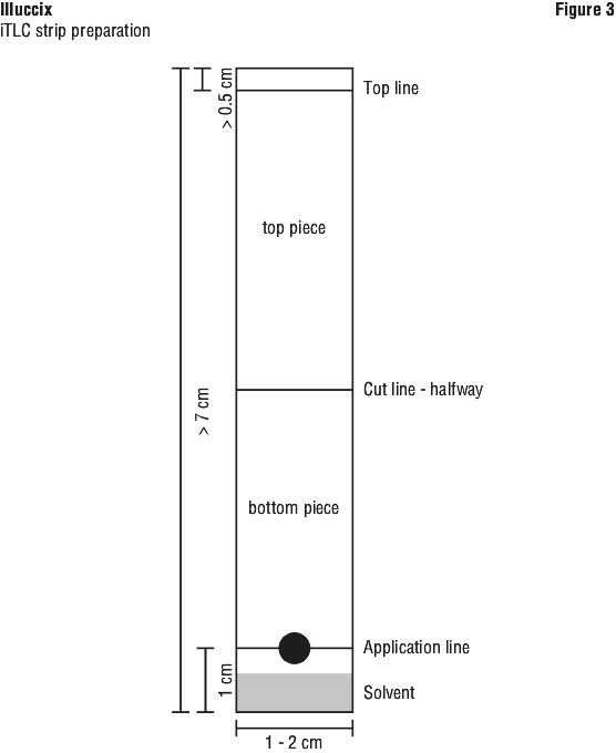 3. Using a pencil, mark a line on the iTLC strip, 1 cm from the bottom, and at least 0.5 cm from the top (see Figure 3).